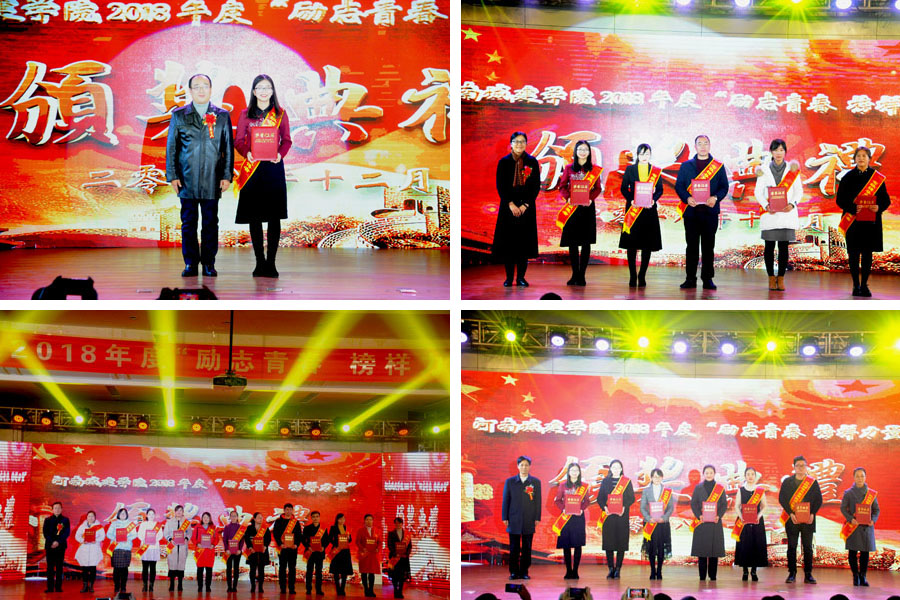 (通讯员 陈舒)为表彰先进集体和个人,传播青春榜样正能量,12月10日下午,我校2018年度"励志青春,榜样力量"颁奖典礼在行政楼报告厅举行。校长王召东、校党委副书记张坤书、副校长王靖,校相关职能部门负责人、各学院党总支书记出席活动并为获奖的集体和个人代表颁奖,各学院党总支副书记、学工办负责人、辅导员、受表彰的老师和学生代表、观礼学生代表共计500余人参加典礼。