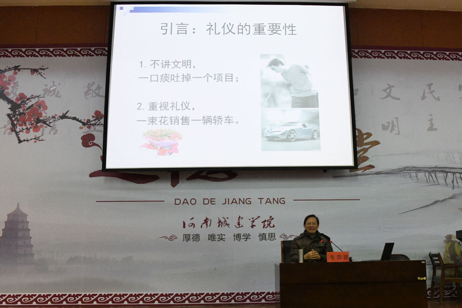 (通讯员 姜丽娟)为深入贯彻落实党的十九大及全国教育大会精神,落实立德树人根本任务,营造文明和谐的校园文化氛围,12月10日下午,我校特邀著名礼仪学家、武汉大学李荣建教授和国家高级礼仪培训师周静副教授做客我校第18期“美育讲堂”,以《弘扬礼仪新风尚 争做最美城建人》为题作专题讲座。来自全校各单位的近300名教师聆听讲座。