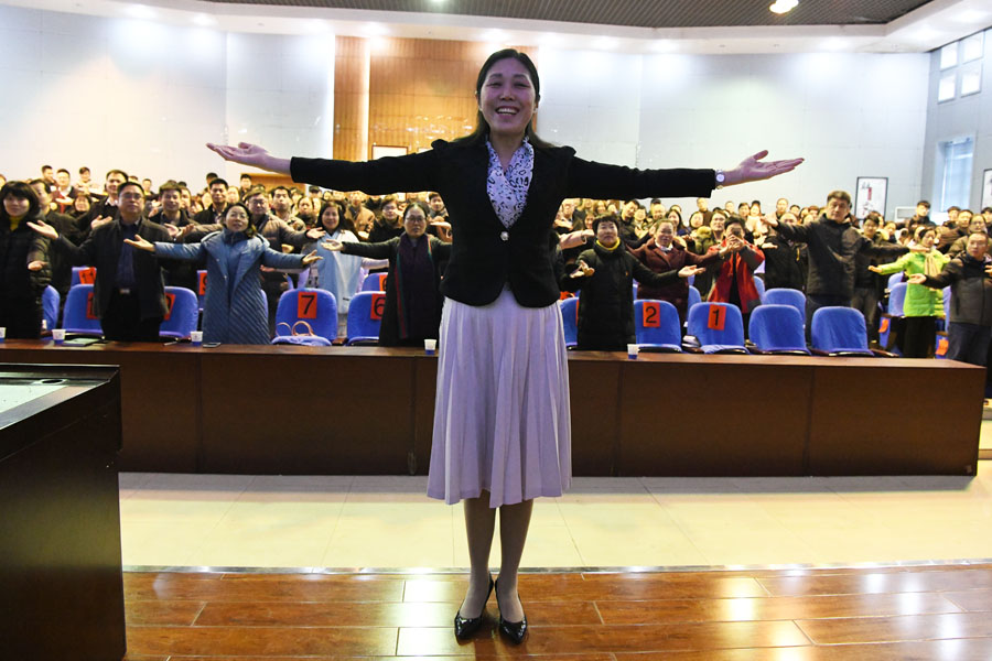 周静带领老师学习手语礼仪舞