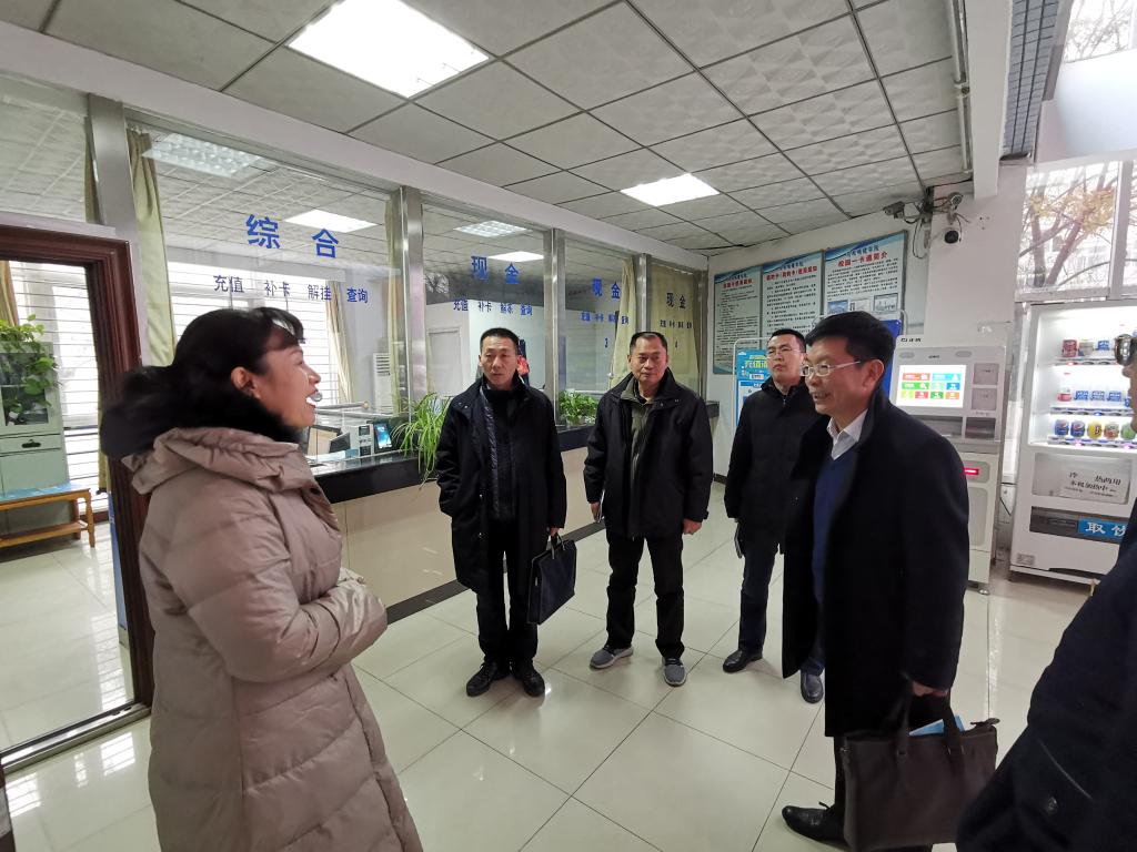 汇报会后,专家组查阅了学校信息化发展水平评估支撑材料,实地走访了我校人事处、教务处、图书馆、后勤等单位,认真了解了我校基础网络设施、基础支撑平台、数字资源、智慧教育治理体系、网络信息安全以及各业务应用系统的相关软硬件情况、运行情况;并对赵金安及相关单位负责人进行了访谈。
