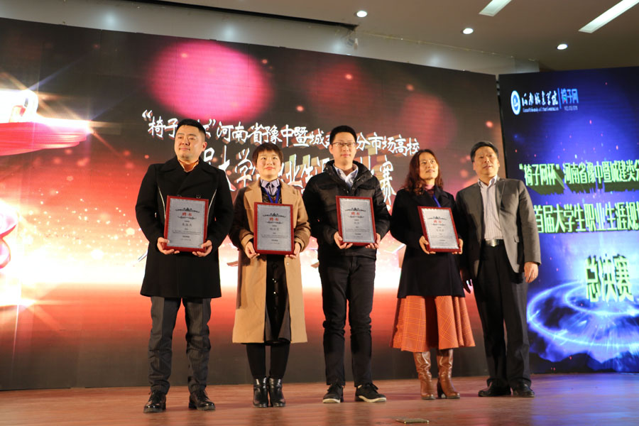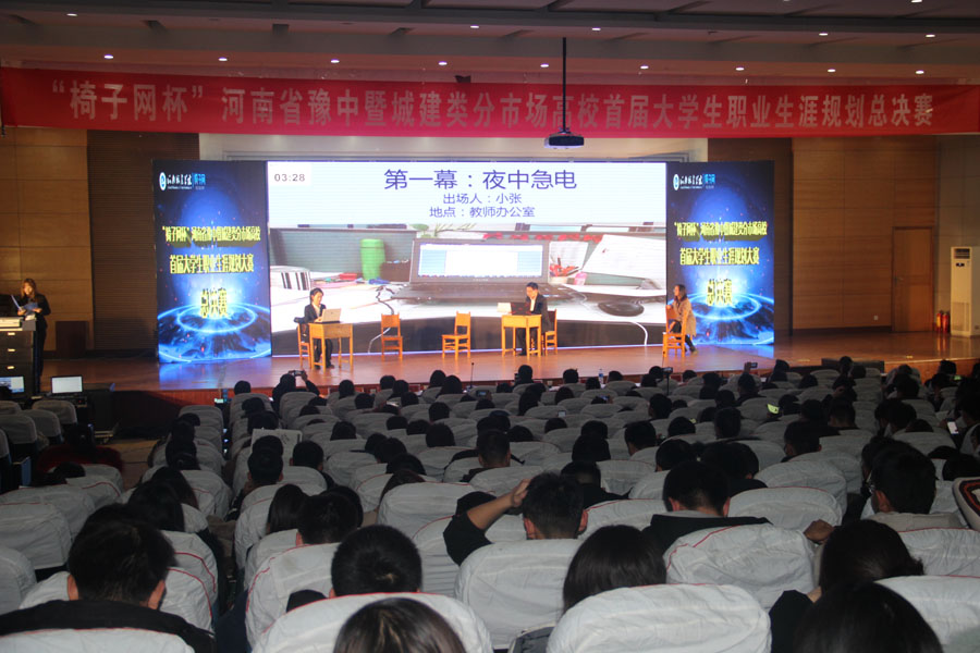 (通讯员 刘娜)12月14日下午,“椅子网杯”河南省豫中暨城建类分市场高校首届大学生职业生涯规划大赛总决赛在我校行政楼学术报告厅举行,河南省大中专学生就业创业指导服务中心副主任焦金雷,我校副校长赵金安出席会议。本次大赛邀请椅子网总经理朱振杰、百度华南招聘负责人倪杰、智联招聘金牌面试官杨洪霞、安徽省人力资源开发研究院顾问陈荣翠、郑州大学博士生导师王献玲、河南大学就业指导中心主任李从国、河南师范大学就业指导中心副主任冯峰担任评委。豫中区高校负责就业创业的领导和我校各学院主要负责人、就业专兼职教师及500余名学生观看了比赛。