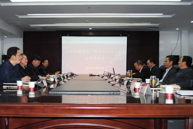 河南财经政法大学党委书记杨宏志对我校考察学习组一行表示热烈欢迎。河南财经政法大学副校长赵传海、李观虎等领导分别介绍了该校校情以及新校区“大物业”的基本内容、经费预算、运行情况、招标过程等。