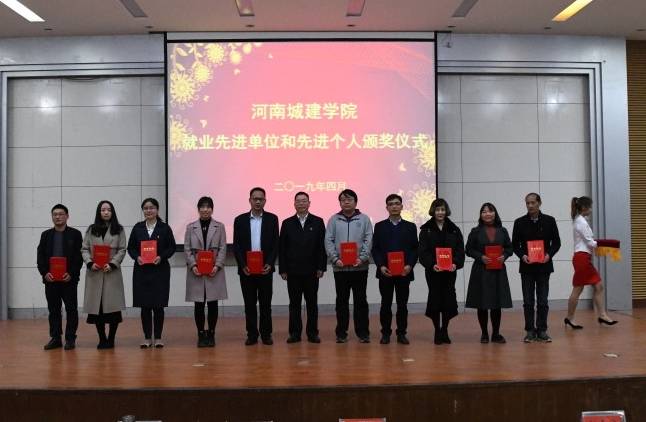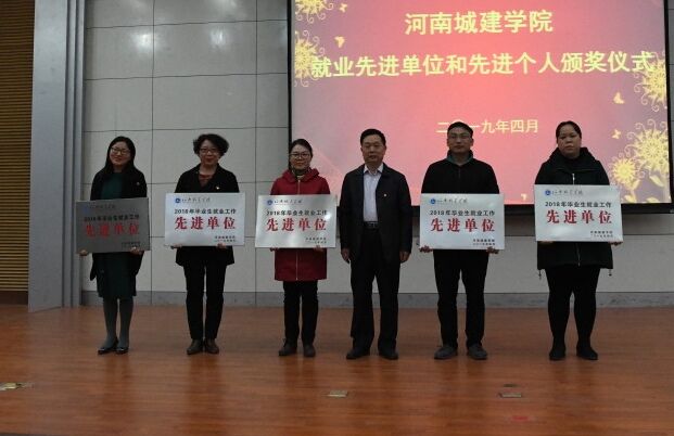 王靖宣读了《河南城建学院关于表彰2018年度毕业生就业工作先进单位和先进个人的决定》。梁再培为能源与建筑环境工程等5个就业工作先进单位颁奖,许朝民为韩二帅等10名就业工作先进个人颁奖。