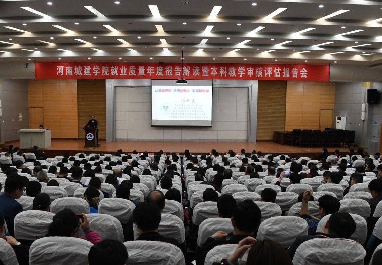 (通讯员 宋伟)4月9日下午,我校在学术报告厅召开就业质量年度报告解读暨本科教学审核评估报告会。河南省教育评估中心副主任张新民、校领导张惠贞、王召东、许朝民、赵金安、杨风岭、梁再培、王靖、刘守勇、周新峰出席会议,会议由副校长王靖主持。学校机关管理人员、各学院党政领导班子成员、教授、博士、教研室主任、学工办主任、校企合作办主任、就业指导教师、辅导员、受表彰的先进单位和个人代表参加会议。