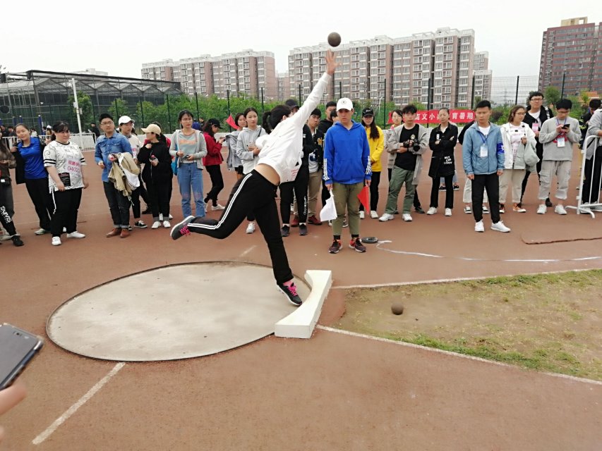 铅球在空中划出美丽的弧线,映射出青空下你拼搏的身姿