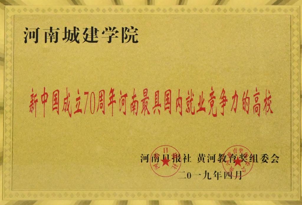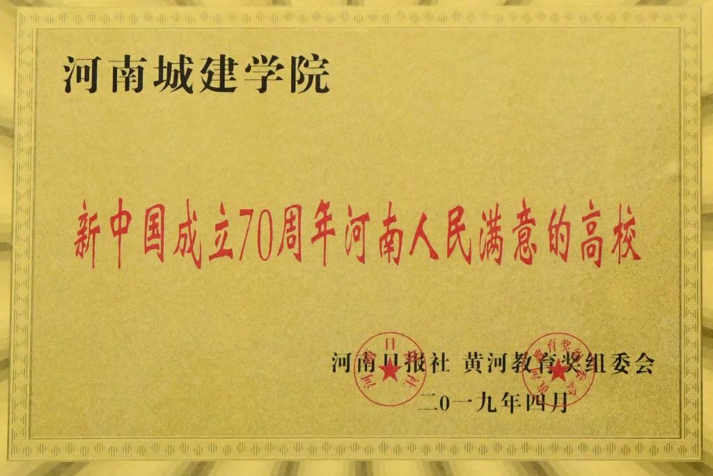 2019年是中华人民共和国成立70周年,更是深入贯彻落实全国教育大会精神之年。荣获“新中国成立70周年河南人民满意的高校”和“新中国成立70周年河南最具国内就业竞争力的高校”是社会各界对我校办学质量、办学水平和办学成果的充分认可。河南城建学院将以此为契机,持续改革创新,加快转型提升,奋力写好新时代教育奋进之笔,为中原更加出彩做出新的更大贡献。