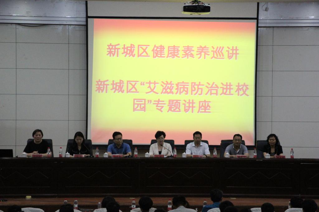 (通讯员 范惠萍)6月3日下午,校医院联合新城区卫计委举办的新城区健康素养巡讲暨“艾滋病防治进校园”专题讲座在我校行政楼学术报告厅举行。副校长王靖出席活动并讲话,省疾病预防控制中心艾滋病防治所所长孙定勇、平顶山市疾控中心艾防所主任张国昌、平顶山城乡一体化示范区计生卫生局局长王楠、副局长李艳林、校医院全体人员及学校相关单位负责人和全校近500名师生代表参加。