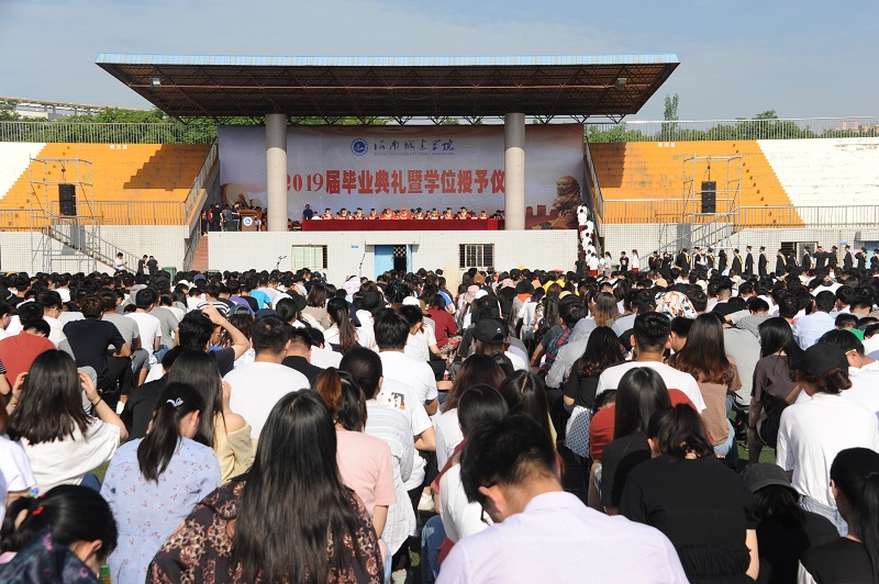 (通讯员 田永果)6月12日上午,我校2019届毕业典礼暨学士学位授予仪式在五环体育场隆重举行。校领导张惠贞、王召东、杨留栓、张坤书、许朝民、赵金安、杨风岭、梁再培、刘守勇出席典礼,校学位评定委员会全体成员、各学院和相关职能部门负责人及2019届全体毕业生参加典礼。典礼由副校长王靖主持。