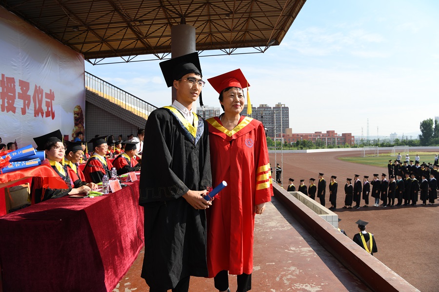 典礼在庄严雄壮的国歌声中拉开帷幕。党委书记张惠贞、校长王召东共同为112名毕业生代表正冠拨苏、颁发学位证书并合影留念。