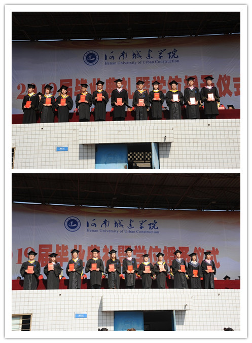典礼上,张坤书宣读了《河南省教育厅关于表彰2019年河南省优秀应届大中专毕业生的决定》和《河南城建学院关于表彰2019届优秀应届毕业生的决定》,赵金安宣读了《河南城建学院关于授予贾小辉等4735名学生学士学位的决定》。与会校领导分别为省、校级优秀应届毕业生代表颁发了荣誉证书。