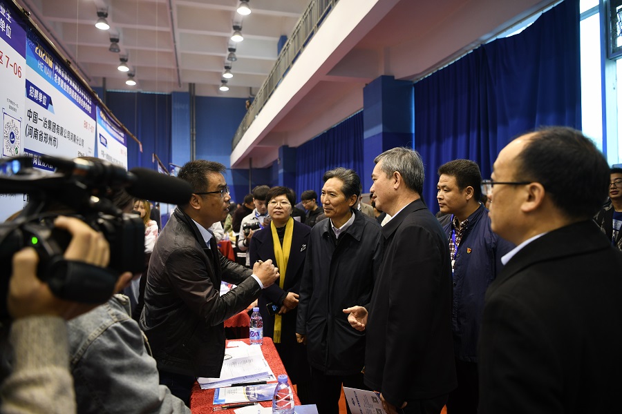 (通讯员 郭小冉)11月22日,“河南省豫中暨城建类2020届大中专毕业生冬季就业双向选择洽谈会”在学校体育馆隆重举行,本次双选会由河南省教育厅、河南省住房和城乡建设厅、河南省大中专学生就业服务中心、平顶山市城乡一体化示范区和我校共同举办。省大中专学生就业服务中心副主任焦金雷、我校校长王召东、副校长王靖到亲临现场指导工作,平顶山市城乡一体化示范区、学校相关部门和各学院等相关负责人到现场了解招聘情况。