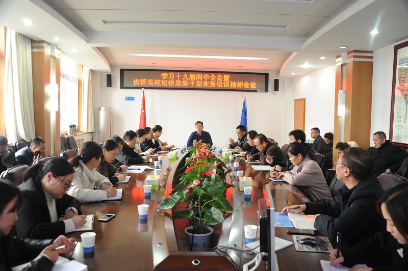 (通讯员 杨晓霜)11月26日上午,校纪委组织全校纪检监察干部在行政楼第一会议室召开学习十九届四中全会暨省管高校纪检监察干部业务培训班精神会议。会议由校纪委书记、省监委驻河南城建学院监察专员刘守勇主持。
