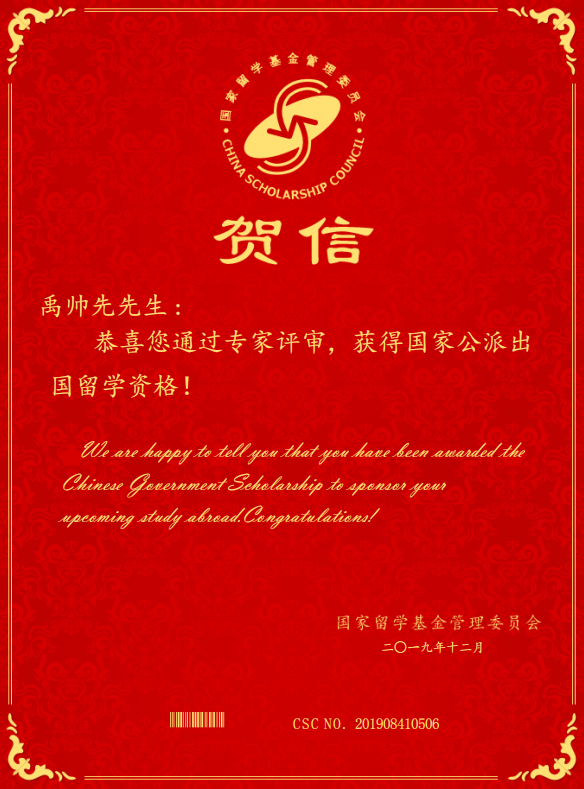 禹帅先是我校中外合作办学给排水科学与工程专业2016级在校生,俄语成绩优秀,综合素质全面。获得2019年国家公派赴俄罗斯著名高等学府——我校合作办学高校俄罗斯圣彼得堡国立建筑工程大学留学资格后,国家留学基金委将为其提供一次往返国际旅费及在俄罗斯留学期间的奖学金,有效地保证其在外学习和生活的各项费用。
