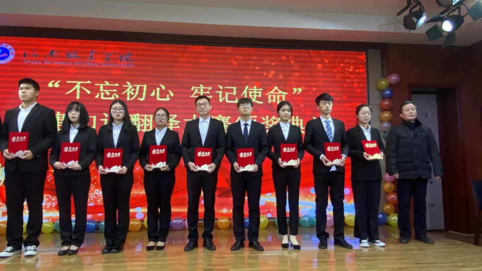 (为“不忘初心、牢记使命”党建知识翻译大赛获奖代表颁奖)