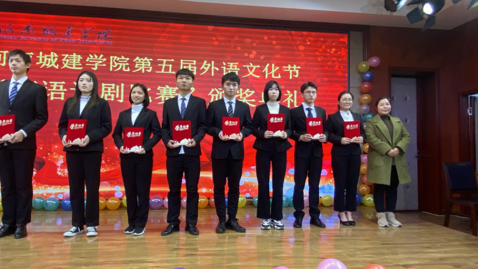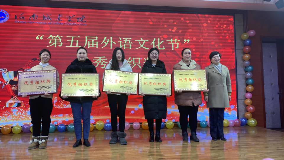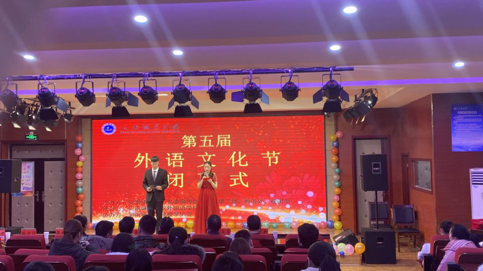 (通讯员 赵星辰)感受异域文化,我与世界对话。12月31日下午,由党委组织部、党委宣传部、党委学工部、教务处、校团委主办,外国语学院承办的河南城建学院第五届外语文化节在四号楼音乐教室闭幕。副校长王靖,党委组织部、党委宣传部、党委学工部、教务处、校团委、外国语学院等单位负责同志、各学院党总支副书记、团总支书记、学工办主任、教师和学生代表以及获奖人员参加闭幕式。