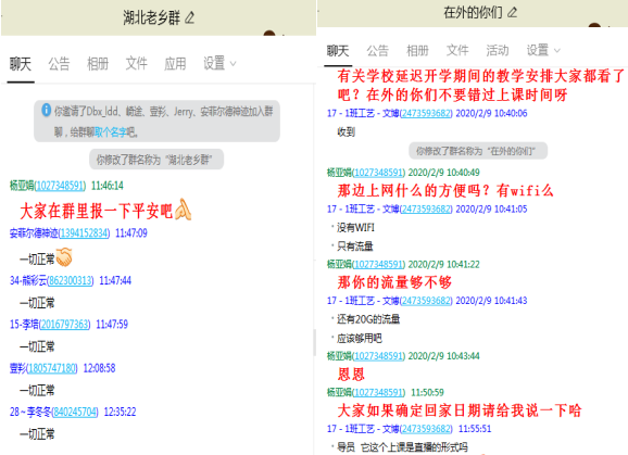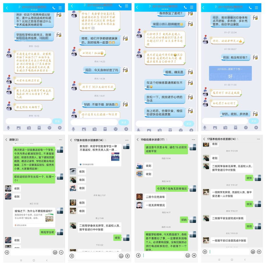 材料与化工学院扎实做好重点学生慰问工作,积极排查湖北籍以及在外打工学生。针对湖北籍及在外打工学生,建立专门QQ群,每人每天在群里汇报自己的健康状况,对同学们遇到的困难进行及时了解并协助解决。