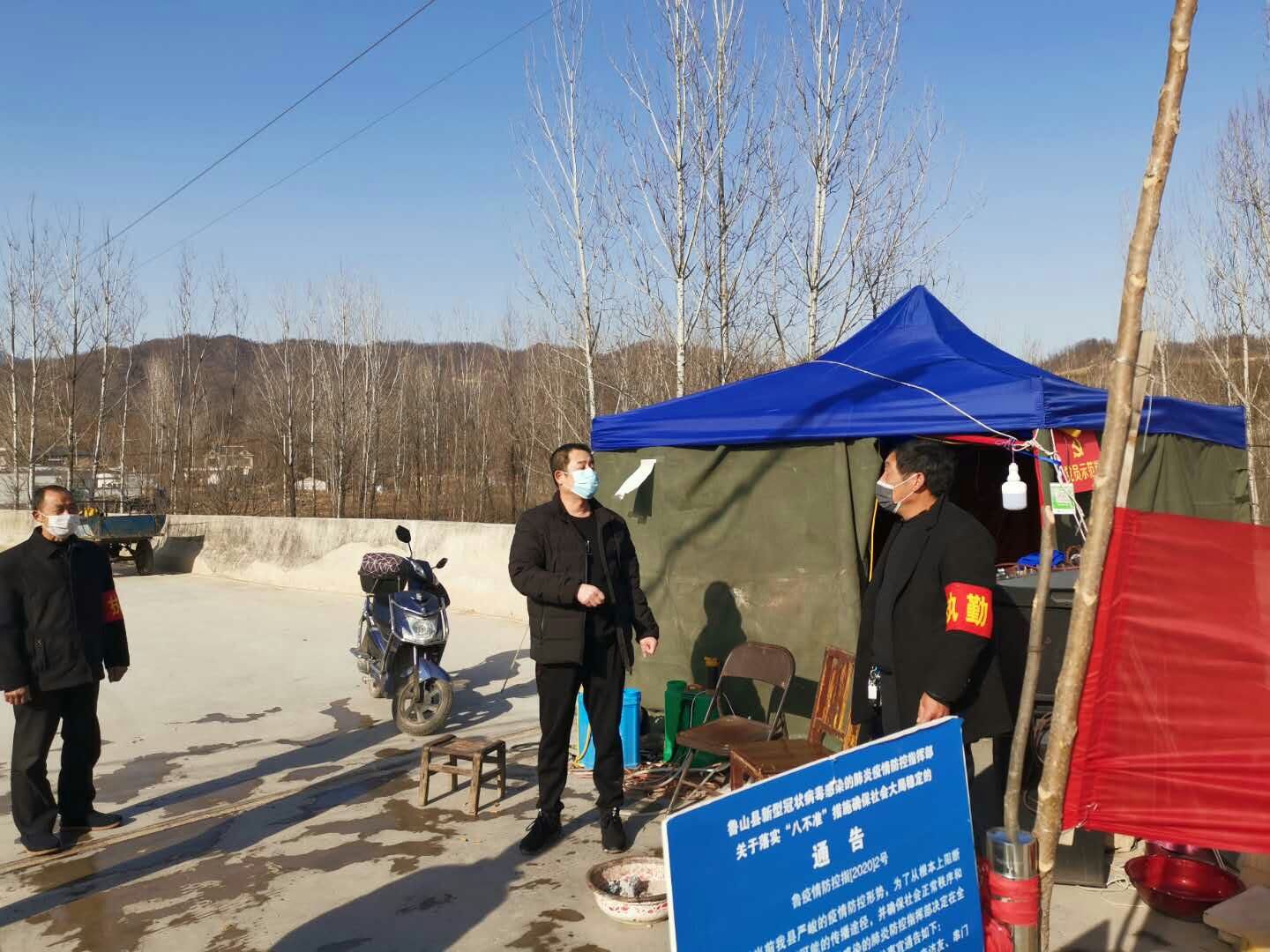 我校驻鲁山县库区乡搬走岭村第一书记杨尧军在省里启动一级响应后,立即带领村“两委”组织干部、小组长、党员,逐户摸排疫情,动态掌握外地返乡人员信息,并先后调整成立5个防控值班卡点,由村“两委”干部带头,动员村民组长、党员、入党积极分子和公益性岗位等参与,全天24小时做好轮流值班值守工作。为做好新冠肺炎疫情防护政策宣传、防护知识介绍,他还组织党员干部利用村里的广播、微信群、手机短信、张贴横幅、发放宣传单等方式,及时发布关于疫情防控的各类动态信息和通知报道,教育引导群众提高防疫认识,掌握防疫方式方法。在各类防疫物资短缺紧张的情况下,杨尧军同志积极联系,多方协调,寻求各种途径,帮助搬走岭村获赠电子体温枪2支、消毒液25公斤、口罩180个和方便面10箱。2月4日,是农历立春之日,为了统筹协调好防疫和春耕之间的矛盾,杨尧军在做好疫情防护的同时,组织带领村“两委”党员干部加强对出村春耕人员的管理,防止私自外出,实行登记测量体温制度,切实做到防疫春耕两手抓、两不误。
