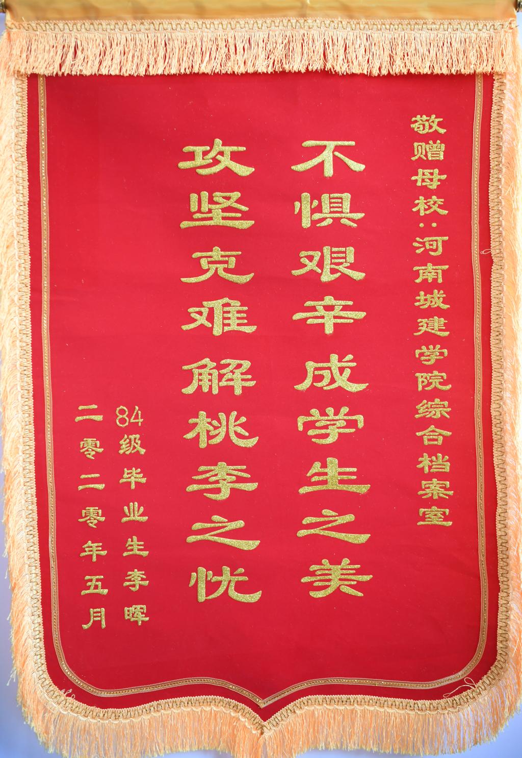 (通讯员 郑明荣)6月2日上午,我校综合档案室收到一份特殊的快递,原来是一面写着“不惧艰辛成学生之美、攻坚克难解桃李之忧”的锦旗和一封感谢信。“我衷心感谢母校档案室真诚服务、热心解忧的好风尚,真诚祝愿母校蒸蒸日上。”我校1984级校友李晖在感谢信中以真挚朴素的话语表达了他对我校综合档案室工作人员耐心细致、全力协助其办理学历认证事宜表示由衷的感谢!