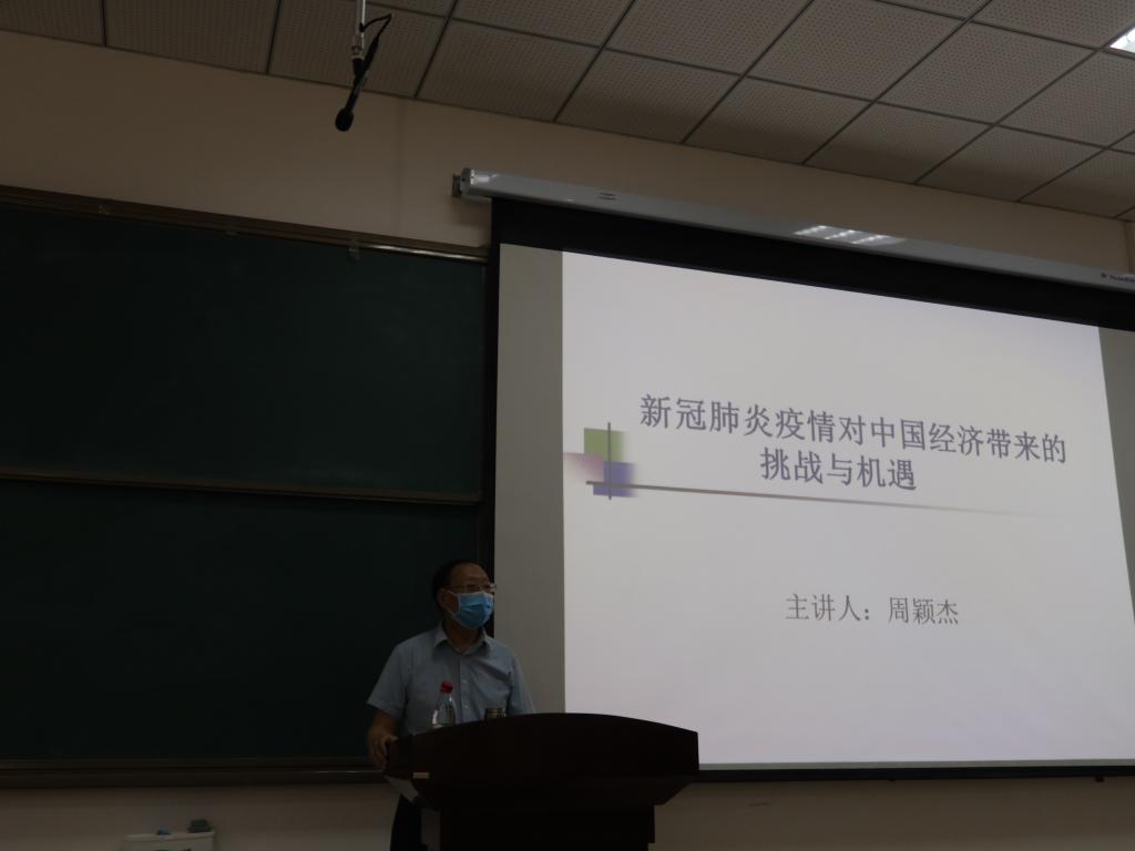 周颖杰以“新冠疫情对中国经济带来的挑战与机遇”为题,围绕“经济增长不稳定、经济主体陷入危机、金融风险加大、内外经济失衡”等四个方面,通过列数字、举例子、作比较,透彻分析了疫情对我国乃至世界上诸多行业例如餐饮旅游业、房地产和建筑业、制造业、高科技行业所带来的挑战与影响。同时,立足中央提出的“六稳”“六保”工作任务,详尽分析了疫情对中国经济带来的新机遇,展望了医疗健康、人工智能、在线教育等9个行业未来的光明前景,进而结合土木与交通工程学院专业特色,阐述了“新基建”与“旧基建”的差别以及“新基建”的未来发展前景。