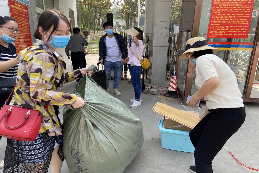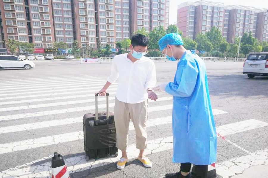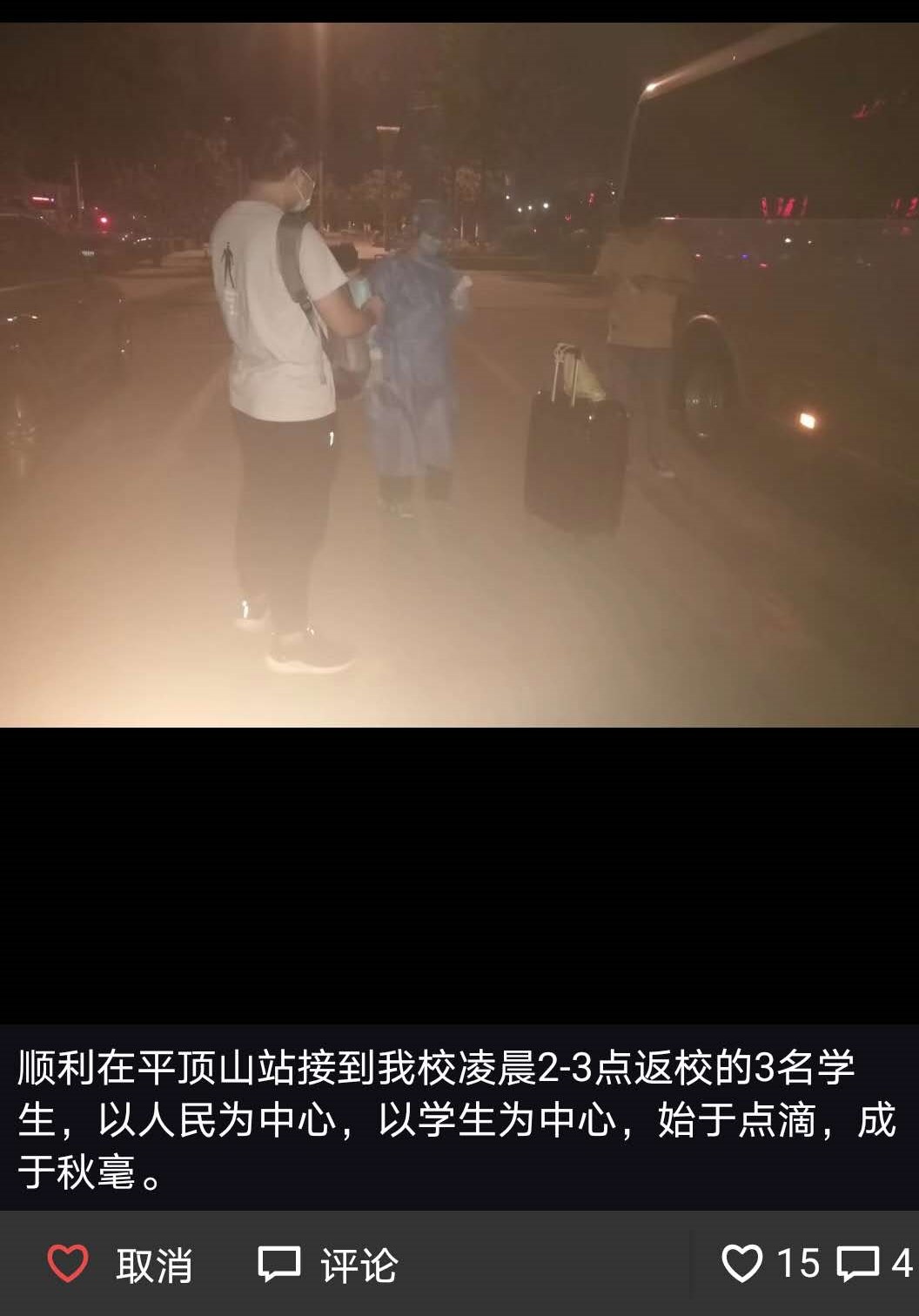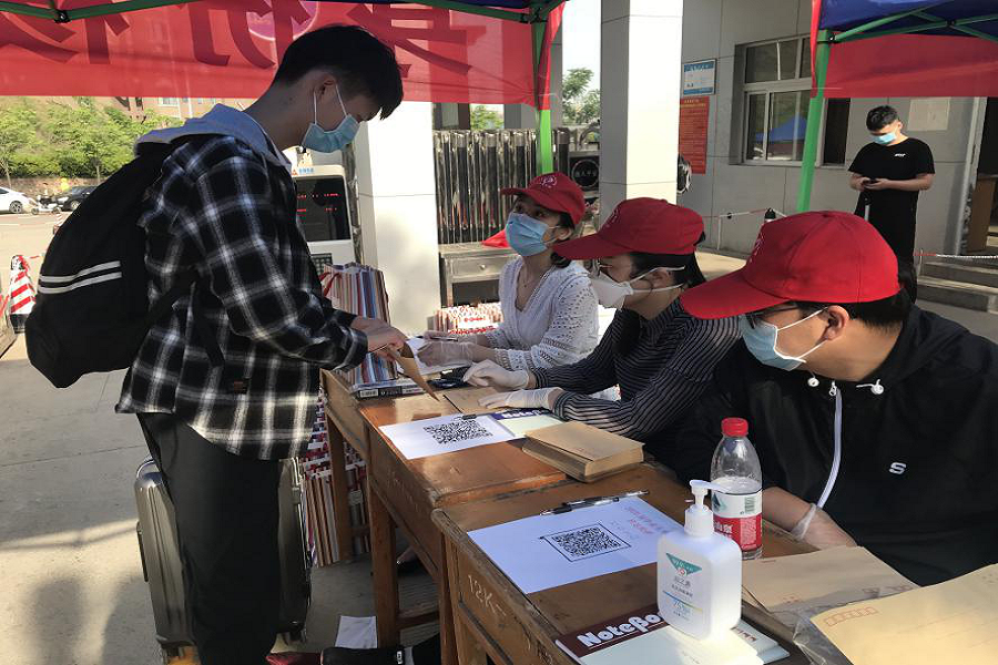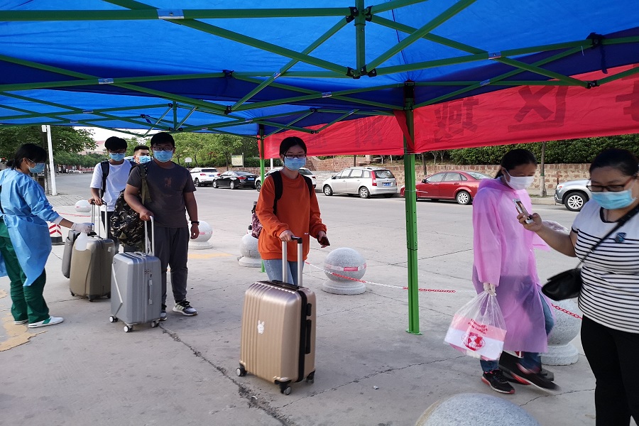 为平稳安全迎接返校复学学生“回家”,学校安排专门车辆、党员突击队员、消杀工作人员和教师志愿者到市区各大汽车、火车接站点开展接站服务,在车站经过核对身份、监测体温、行李消毒等环节,然后由专车护送,“点对点”接送返校学生直达学校,有效减免学生与外界接触的环节,确保学生安全返校。在学校各报到点,各学院负责接待的老师和志愿者们翘首以待,积极引导学生行李消毒、更换口罩、体温检测识别、填报报到信息等,并为每一个返校学生发放口罩、消毒酒精、防控手册等爱心大礼包;急着等待的志愿者们,愉快地为返校学生搬运行李。难怪有很多返校的同学感动地说:“这么热情周到的服务,还是在大一作为新生报到的时候,才感受到的,没想到临近毕业,这次又体验到学校这么热情周到的接待和服务,真是让我们十分的感到、万分的感激!”