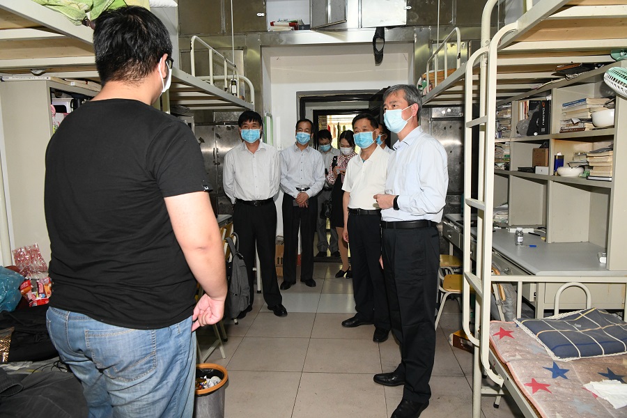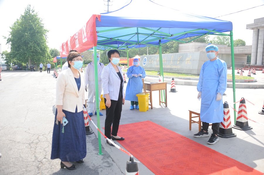 学生返校复学期间,校领导高度重视,多次前往各火车站、汽车站、学校北门、西门等接站点进行视察指导,并及时召开党委会总结研究首批学生返校复学情况,指导相关部门和各学院总结经验教训、不断优化和改进报到程序,完善接待服务和管理工作。