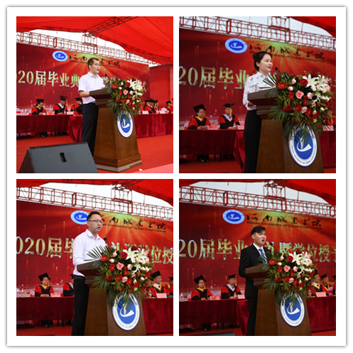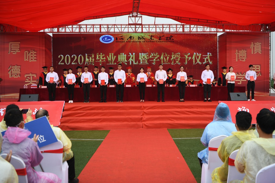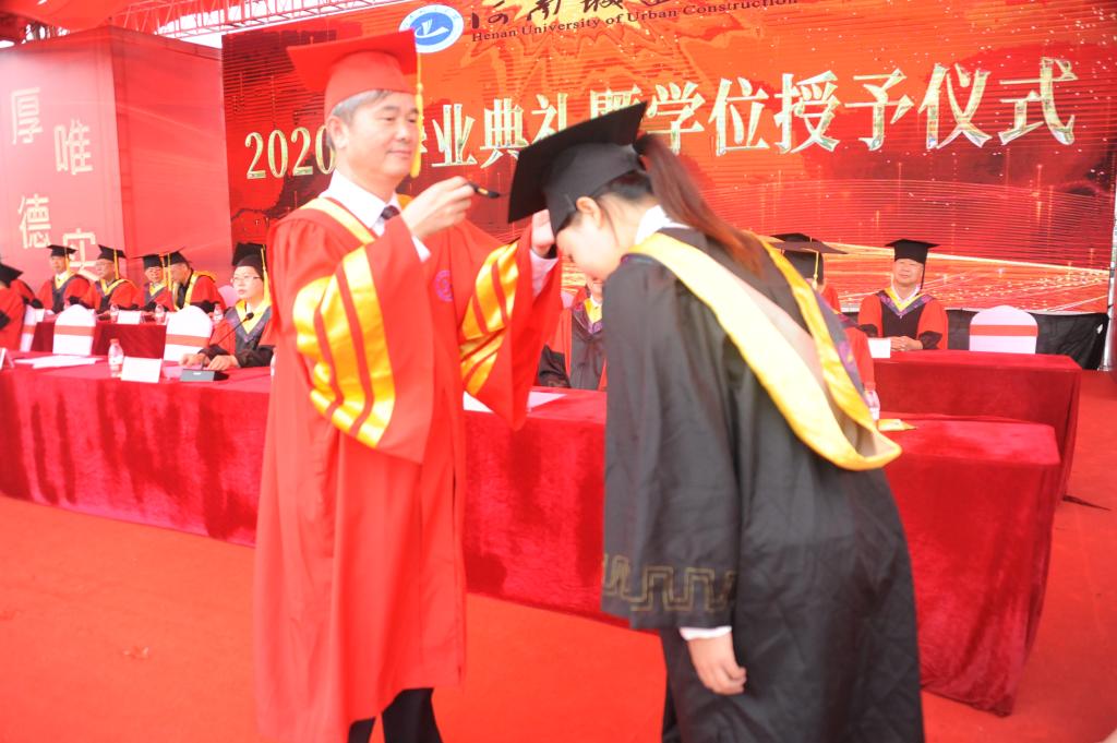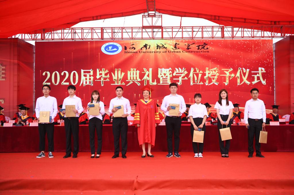 典礼上,党委副书记王靖宣读了《河南城建学院关于表彰2020届优秀应届毕业生的决定》,副校长周颖杰宣读了《河南城建学院关于授予苏金满等5106名学生学士学位的决定》。与会校领导分别为校级优秀应届毕业生代表颁发了荣誉证书。