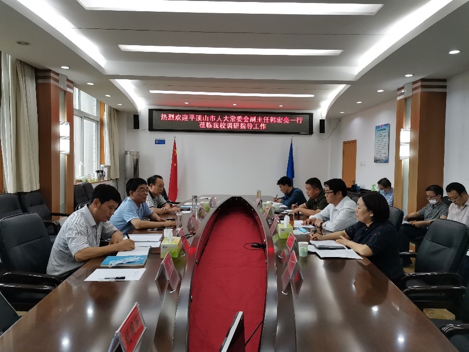 陈松涛对韩宏亮一行来校调研指导工作并洽谈校地合作事宜表示欢迎。他简要地介绍了我校的办学定位、学科专业建设、科研创新及服务行业和地方经济社会发展等方面的情况。他指出,河南城建学院作为驻平院校,始终将平顶山市作为服务的立足点和首要对象,希望双方在此次合作中以问题为导向,直击问题,扎实开展合作,为平顶山市地方经济高质量发展、重返第一方阵做出积极贡献。他要求,科研处要做好统筹协调和组织工作;各相关单位要提高认识,科学组建专业团队,高效开展城市体检各项工作。