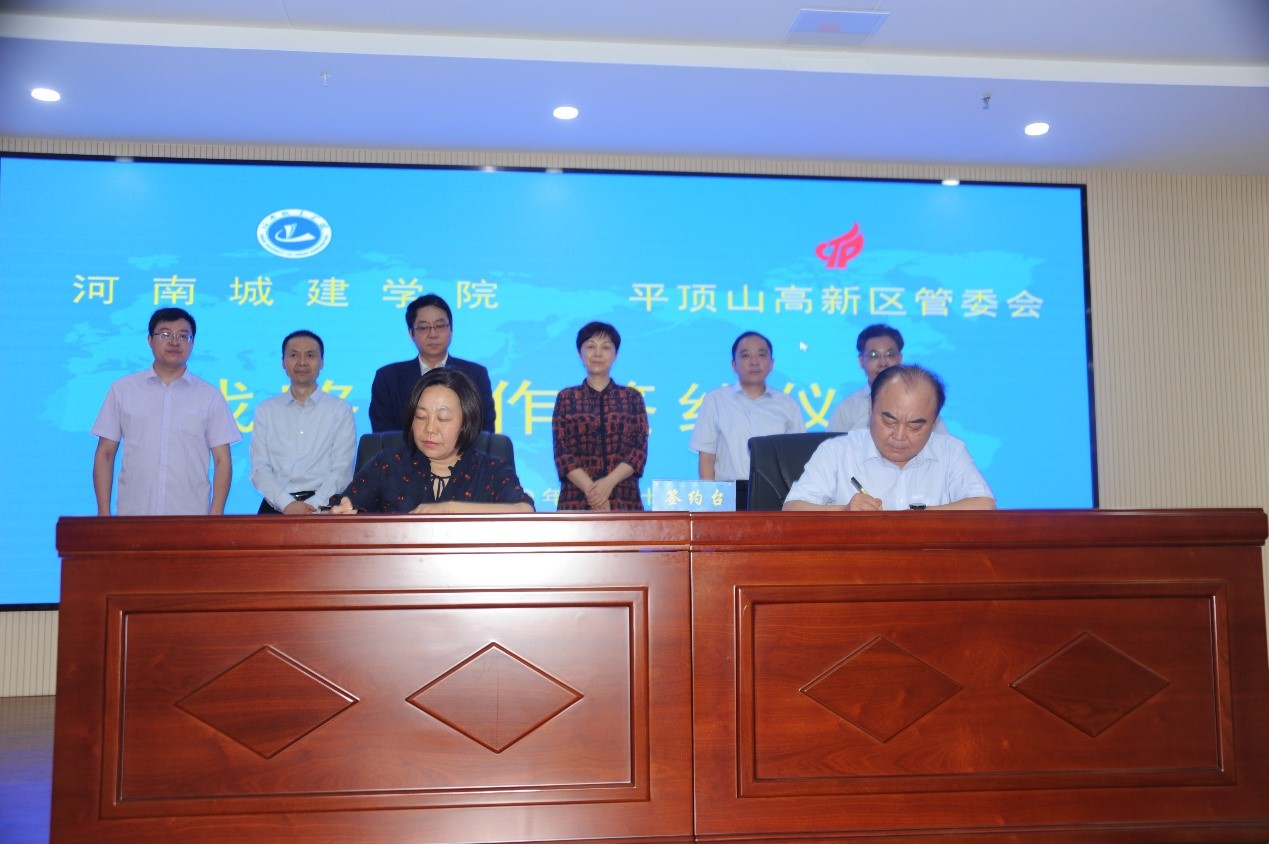 (通讯员 杨亦龙 尤培波 荣树坤)为充分发挥我校的学科优势和研发资源,促进平顶山市高新区产业转型升级,6月18日上午,副校长陈松涛率领科研处(学科办)、发规处、土木学院、市政学院、计算机学院、电气学院、材化学院等部门负责人一行13人赴高新区火炬园参加“河南城建学院-平顶山市高新区管委会”战略合作协议签约仪式。平顶山市副市长刘颖、市政府副秘书长郭栓谨、市科技局局长赵会杰、高新区党工委书记凌兵奎及其他班子成员、园区负责人、高新区签约企业代表等共同出席了签约仪式。签约仪式由高新区党工委副书记、管委会主任李明主持。