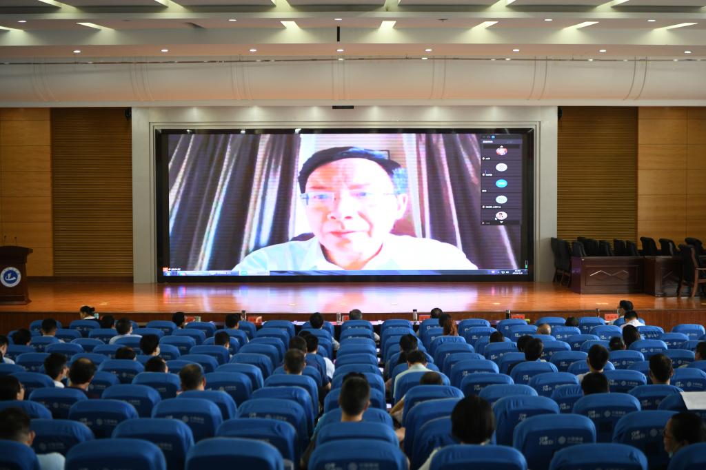 在会议第二阶段,学校特邀教育部学校规划建设发展中心专家、教育部本科教学工作合格评估专家、中国高等教育学会院校研究分会应用型院校研究中心主任、常熟理工学院顾永安教授做了题为《高水平应用技术型大学建设的新形势新特征新内涵新思维新路径》的网络视频培训报告。顾永安教授深入浅出地为我校全体教职员工讲解了应用型高等教育发展的新要求,给出了应用型专业建设的策略、方法和途径。