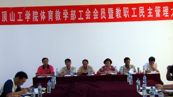 (通讯员罗代)9月5日下午,“平顶山工学院体育教学部工会会员暨民主管理大会”在体育教学部会议室隆重召开。这次大会是在开展“三新”大讨论教育活动中召开的一次重要会议。院工会李勤友副主席出席了本次会议并致辞。大会由教学部副主任赵爱民主持。