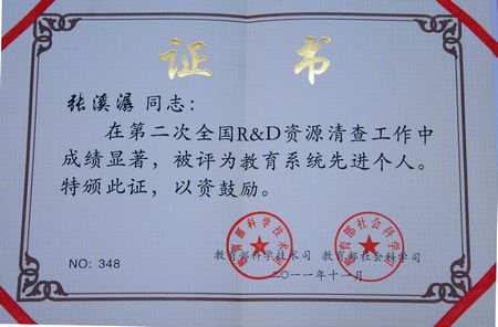 近日,教育部科学技术司、社会科学司联合下发了《关于表彰教育系统第二次全国R&D资源清查先进集体和先进个人的通知》(教技司[2011]352号),对全国教育系统中在第二次R&D资源统计、清查工作中成绩显著、贡献突出的一批先进集体和先进个人进行了表彰,我校获得了国家级“教育系统先进集体”荣誉称号,科研处张溪潺同志获得了国家级“教育系统先进个人”荣誉称号。