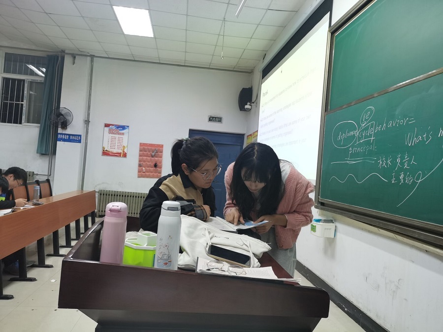 本期学业朋辈帮扶学习班开设《高等数学》和《大学英语》两门课程,共计4个班,来自全校150余名存在学业困难的学生参加了辅导学习。本期的“讲师团”由来自外语学院及数理学院家庭经济困难的4名优秀学生组成。晚上7点,辅导正式开始,“讲师”们对学生们进行专项辅导,传授学习方法,串讲了各个章节的知识点,并对历年课程考试题目进行了解题分析。同学们全程认真聆听,将要点进行详细记录,并进行热烈交流,不断汲取知识,积累经验。翻动的课本,沙沙的笔声,一页页课堂笔记,一张张求知脸庞,“老师”在讲,“学生”在听,彼此的真挚与热忱足以抵过寒冬料峭,留温暖于心间。