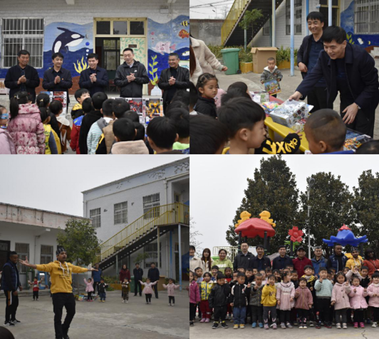 随后,宿金勇一行前往库区乡刘庄幼儿园,为每个不同年龄段的小朋友们带来了丰厚的礼物,带领孩子们一起唱儿歌,勉励园区的老师和工作人员要切实关注孩子们的成长,尽最大可能为孩子们创造舒适开心的成长环境。留学生们也为孩子们准备了多彩的互动节目,带领孩子们一起做游戏、唱中英文歌曲,开展足球表演等互动活动,既给孩子们开拓了眼界视野,也为他们带来了童年乐趣,让小朋友们从小就体会到了不同国家语言的魅力,体验一次别样的文化体验。