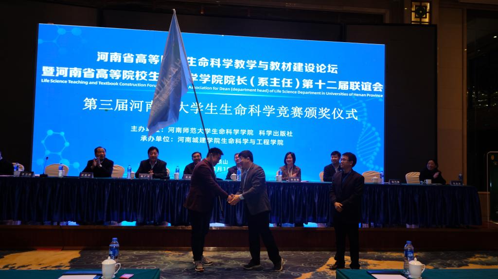 组委会副主任李卫国宣布河南牧业经济学院作为河南省第四届大学生生命科学竞赛承办单位并授旗。