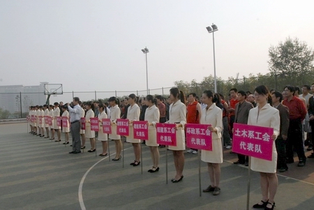 开幕式在嘹亮的国歌响中开始。张坤书宣布河南城建学院第一届教职工篮球赛开幕并为首场比赛开球。王春研致开幕辞,并宣读本次比赛的具体章程,裁判员和运动员代表分别发表誓词,比赛正式拉开帷幕。
