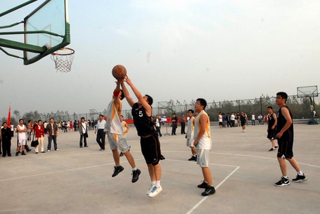 (通讯员 蒋剑虹)10月27日下午,由院工会主办的河南城建学院第一届教职工篮球赛开幕式在西校区篮球场隆重举行。院工会主席张坤书出席开幕式,院工会副主席王春研、体育教学部主任常静和参加比赛的各分工会的领队、教练员、运动员参加开幕式。开幕式由院工会副主席王增欣主持。