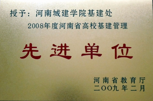 (通讯员 祁利巧)2009年6月12日,在河南省高等学校基本建设研究会上,我院基建处被授予2008年度河南省高校基建管理先进单位。