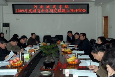 (通讯员 张宏敏)12月28日下午,我院在行政楼二楼会议室召开2009年度河南城建学院教育科学研究课题立项评审会。院学术委员会副主任、副院长陈丙义、杨留栓出席会议,院学术委员会成员参加评审会。会议由院学术委员会委员、教务处处长王春阳主持。