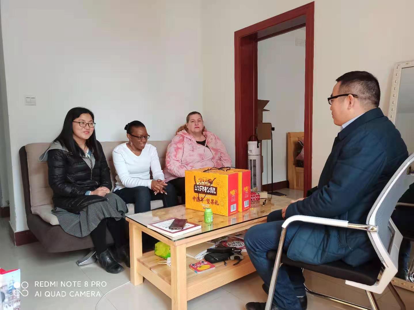 (通讯员 董召锋 董松涛)在中国新春佳节即将到来之际,为关心关怀寒假期间留校的外籍教师和留学生,使其度过一个健康、祥和、快乐、安全的假期。2月10日上午,国际交流与合作处(国际教育学院)、后勤处、保卫处、兴盾物业公司等相关部门负责人深入外教、留学生公寓看望并慰问了寒假期间留校的外籍师生。