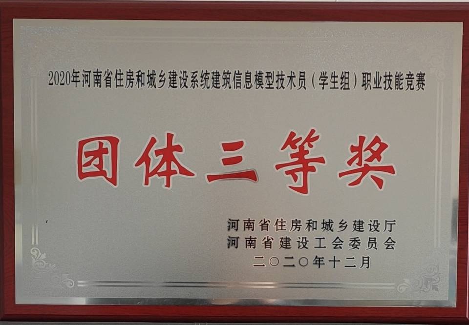 (通讯员 朱松岭)日前,河南省住房城乡建设厅、河南省建设工会公布了《关于表彰2020年河南省住房和城乡建设系统职业技能竞赛获奖单位和选手名单的通知》(教建工〔2020〕458号),由我校土木与交通工程学院选派的团队在装配式建筑施工员项目中荣获团体三等奖,其中侯澳国、张家诚、赵亚琳、刘鹏江、薛帅磊等五名同学荣获“优秀选手”称号,我校被评为组织工作先进单位。