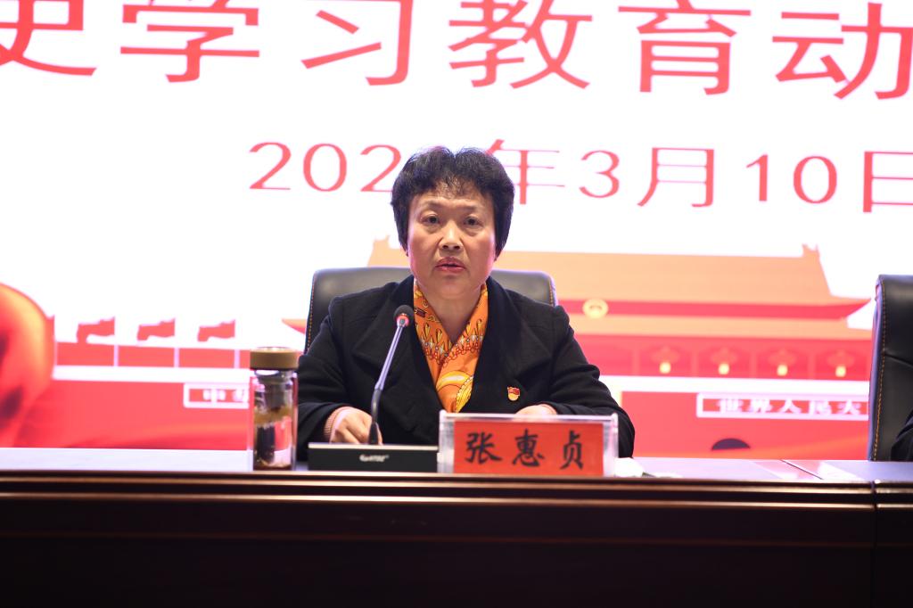 张惠贞指出,今年是中国共产党成立100周年,在全党开展党史学习教育,是党中央立足党的百年历史新起点,统筹中华民族伟大复兴战略全局和世界百年未有之大变局,为动员全党满怀信心投入建设社会主义现代化国家作出的重大决策,我们要进一步把思想和行动统一到党中央、省委、市委决策部署上来,扎实开展好党史学习教育。