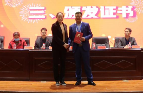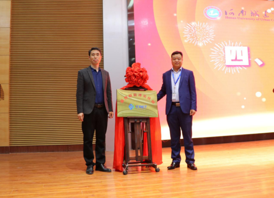 仪式上,吴晓红为张春杰总监颁发河南城建学院“荣誉教授”聘书。