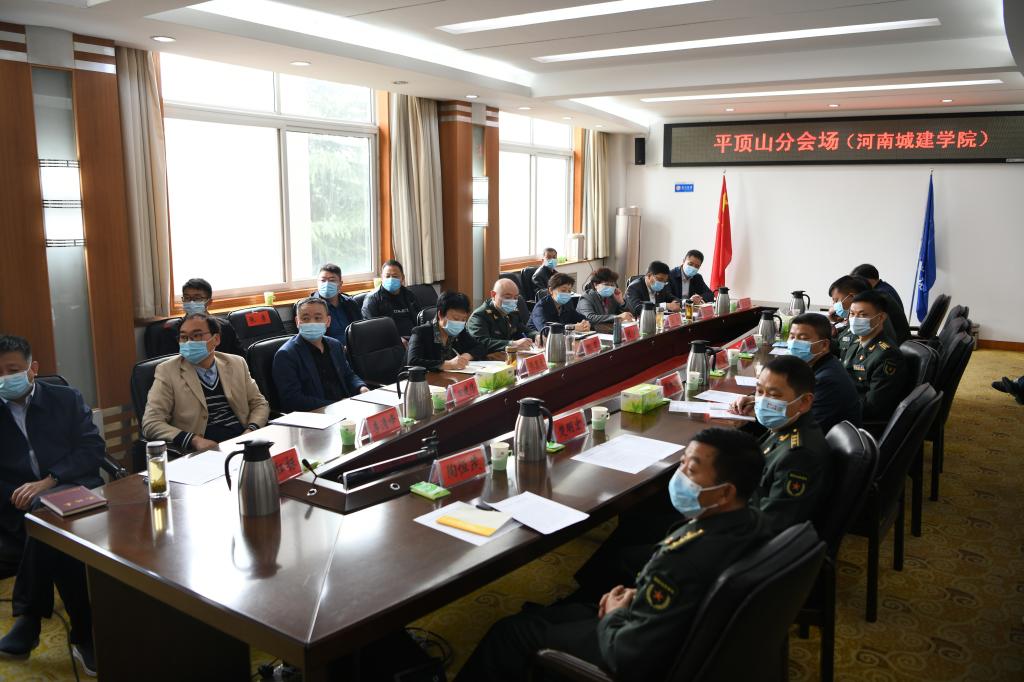 (通讯员 王艳杰)4月22日上午9时, 2021年全省高校国防教育工作推进会视频会议(平顶山分会场)在行政楼第一会议室召开。平顶山军分区政委刘凯、平顶山市副市长刘颖、校党委书记张惠贞、副书记王靖、市国防教育领导小组成员单位负责人、辖区高校领导、高校武装部负责人共30余人参加了视频会议。河南省军区政委徐元鸿、河南省政府副省长霍金花在主会场出席会议并讲话。会议由河南省军区副政委兼纪委书记刘金来主持。