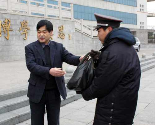 副院长张坤书为保卫工作人员送去春节慰问品