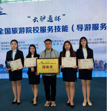 (通讯员 龙丹)5月13日-16日,“云驴通杯”第十二届全国旅游院校服务技能(导游服务)大赛在青岛顺利举行。我校管理学院王玉珍、周婷婷、王丹、马笑笑等四名参赛选手经过理论考核、导游现场和专题讲解、才艺展示等多个环节的激烈角逐,最终夺得一等奖1个、二等奖3个,学校同时获得团体一等奖的好成绩。