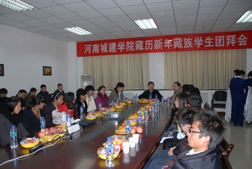 (通讯员 田永果) 歌舞欢腾盈笑语,瓜果飘香话新年。2月22日是藏历水龙新年,我校隆重举行藏历水龙新年团拜会。14名藏族同学及全校壮、满、回、彝、水、蒙古、朝鲜、门巴等各少数民族学生欢聚一堂,共庆藏历新年。宣传部、教务处、招生就业处、团委、学生处以及相关院(系)等部门领导参加了团拜会。党委副书记王召东出席会议并讲话。团拜会由副院长赵金安主持。