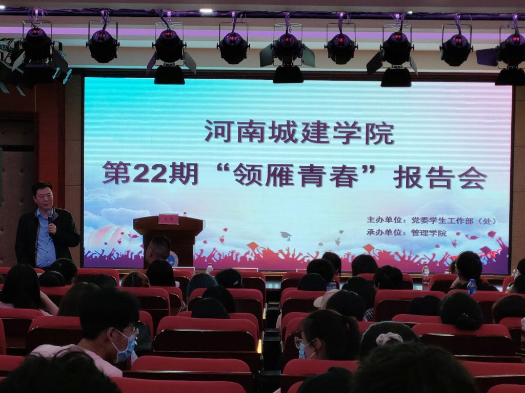 (通讯员 邢瑞杰 李素锦)为进一步打造具有我校特色的校友文化交流平台,充分发挥我校杰出校友的榜样示范作用,引导在校生做好职业规划,更好的以创业带动就业,由校党委学生工作部(学生处)主办、管理学院承办的第22期“领雁青春”报告会于5月19日下午在4号楼音乐教室举办。党委学生工作部(处)、管理学院负责人,学院辅导员代表及销售代表参加了此次报告会。