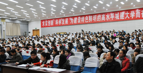 3月2日下午,学校党委书记李德平在学术报告厅主持召开本科评建工作培训会,院长孔留安出席培训会并作重要讲话,出席培训会的校领导还有史战芳、李建生、陈丙义、杨留栓、张坤书、王春阳、赵金安、许朝民。全校副科级以上干部,博士、副高职称以上教师和机关全体工作人员参加会议。