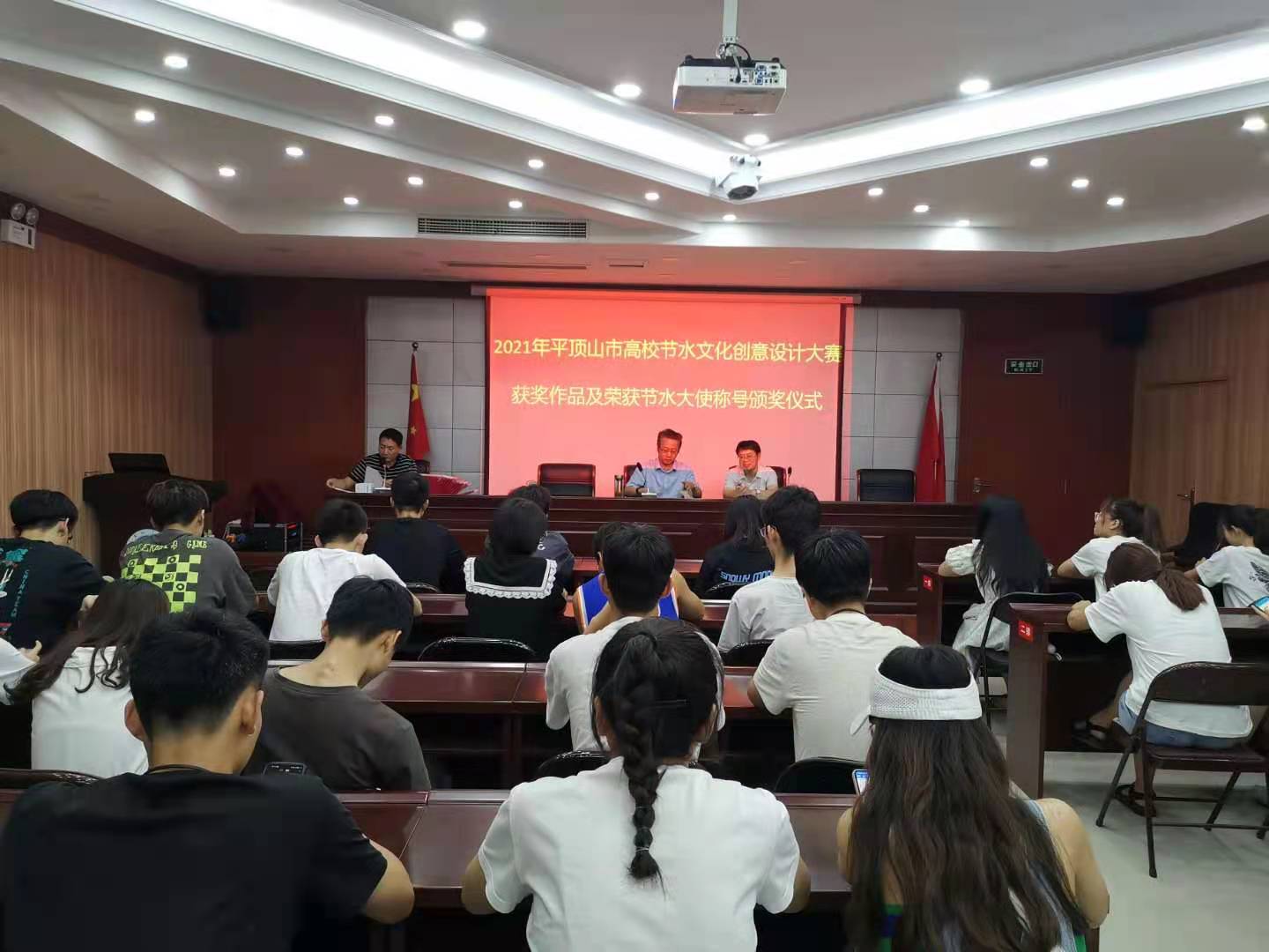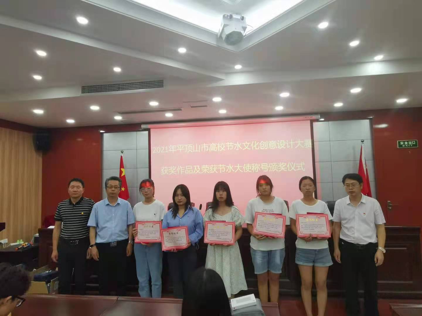 会上对我校荣获“平顶山市高校节水大使”和节水文化创意大赛我校获奖学生进行颁奖表彰。