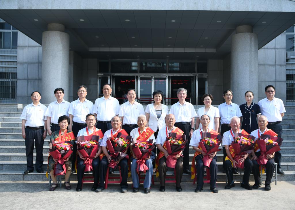 接见结束后,全体校领导与“光荣在党50年”党员代表合影留念,并一一为他们发放了慰问品和慰问金。